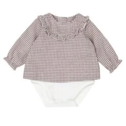 Chicco Baby Mädchen Body mit Body-Unterteil. Jersey, Volantkragen, Kariert, Lange Ärmel, Druckknöpfe, Body-Unterteil.
