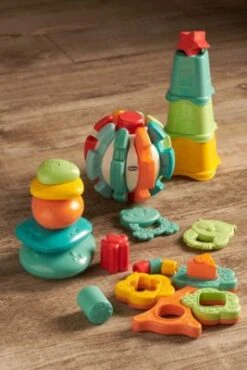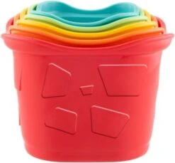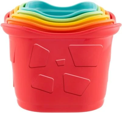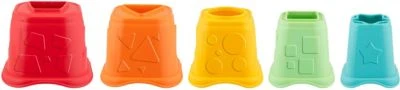 Die bunten Becher von Chicco sind Formensortierer und Stapelbecher in einem! Stapelbecher 2in1 von Chicco aus der „Eco+“-Serie 5 Becher und 5 passende Steckformen mit recyceltem Kunststoff ab 6 Monaten geeignet Die fünf bunten Becher können aufeinandergestapelt werden, um einen Turm zu bauen oder mit den mitgelieferten Formen als Sortierspiel genutzt werden. Jeder Becher hat Formen wie Kreis, Dreieck oder Rechteck eingestanzt, die sich in den mitgelieferten Steckformen wiederfinden und in die jeweilige Öffnung am Becher passen – so können die Kleinen ab sechs Monaten nicht nur Farben und Größen sondern auch Formen kennenlernen und die Feinmotorik trainieren. Die Becher sind zu 80% aus recyceltem Kunststoff aus industriellem Produktionsüberschuss hergestellt. Hinweis Artikel wird farblich sortiert geliefert, Abbildungen können vom Original abweichen.