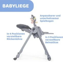 Für maximale Sicherheit und Komfort ist der Sitz 8-fach höhenverstellbar. Der interaktive Spielbogen mit verschiedenen Spielzeugen bringt viel Spaß und fördert die motorischen Fähigkeiten des Kindes. Der Sitzverkleinerer ist waschbar und hat 2 verschiedene Seiten, die je nach Sommer oder Winter höchsten Komfort für den Nachwuchs bieten und angenehm weich sind. Der Bezug aus abwischbarem Material ist einfach zu reinigen und sehr komfortabel. Das Tablett ist abnehmbar und kann auch als Tischset verwendet werden.