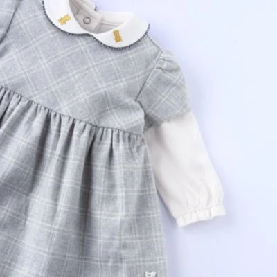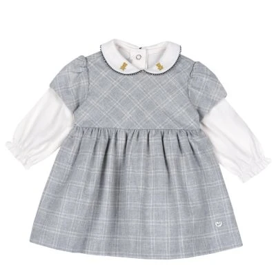Chicco Kleid mit langen Ärmeln, Hübscher Kragen, weicher Stoff mit karierten Muster . Bequeme Öffnung auf der Rückseite mit praktischen Knopfleiste. Das Kleid besteht aus 2-Tlg Langarmshirt und Kleid.