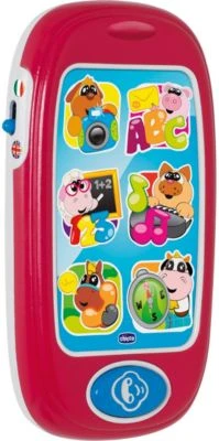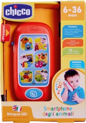 Ein bilinguales Smartphone, designt nach dem Vorbild des Smartphones der Eltern. Die sechs süßen Tiersymbole auf dem großen Bildschirm begeistern Ihr Kind dafür, erste Worte in Deutsch und Englisch zu erlernen.