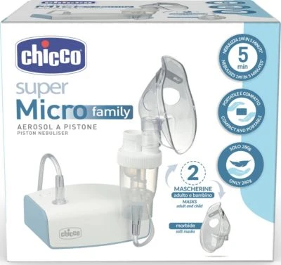 Das praktische Inhalationsgerät „Family“ von CHICCO darf in keinem Haushalt fehlen! Bei Husten, Schnupfen und weiteren Atemwegsbeschwerden ist Inhalieren eine wohltuende Möglichkeit, die Symptome zu lindern. Dieses tolle Gerät ist besonders leicht und kompakt, sodass man es immer und überallhin mitnehmen kann. Dank der zwei verschiedengroßen Masken ist das Gerät für Kinder und Erwachsene gleichermaßen geeignet und bietet zudem maximalen Komfort.