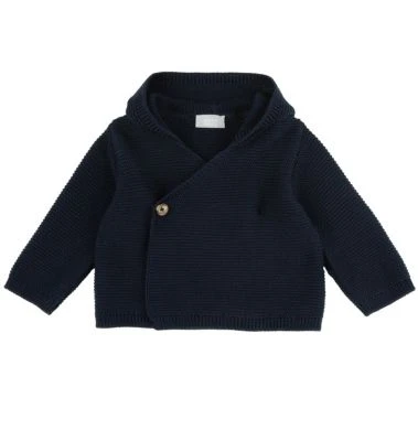Chicco Strickjacke mit Kapuze für Baby-Jungen in Blau Dieser Cardigan für Jungen, der wie eine Jacke geschnitten ist, besticht durch seine ausgesprochen elegante Ausstrahlung. Dieses aus organischer Baumwolle gefertigte und mit V-Ausschnitt und eine Kapuze. Lässt sich für lässige Frühlingslooks stilvoll mit einem passenden Hemd kombinieren. Pflegeleichter Baumwollstrick, angenehm wärmend